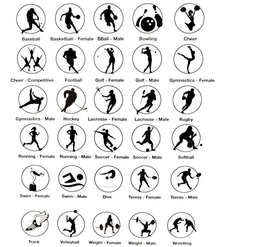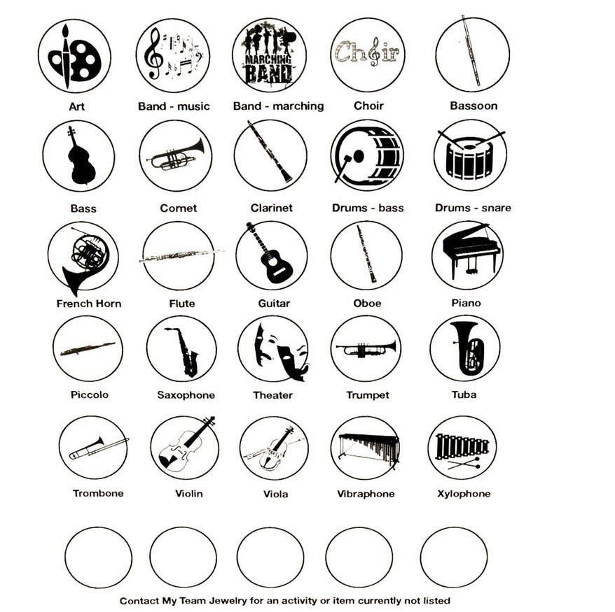 chart showing various art, music, and marching band instrument black silhouette graphic options