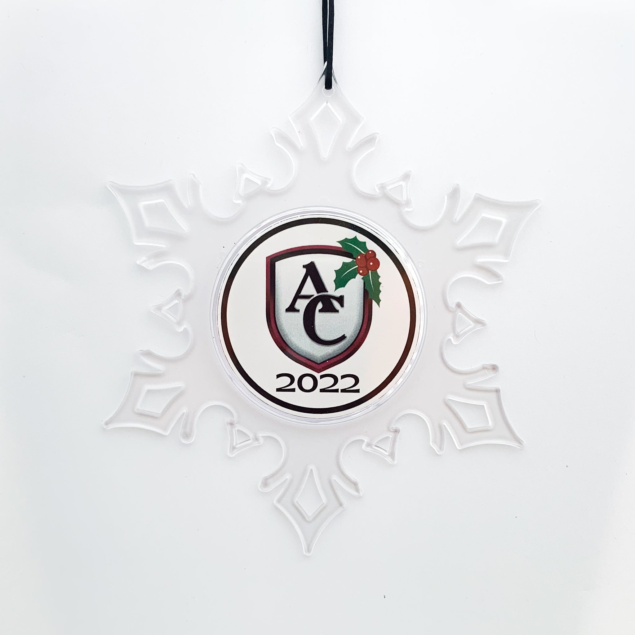personalized acrylic snowflake ornament featuring the Archbishop Curley high school logo and the year 2022