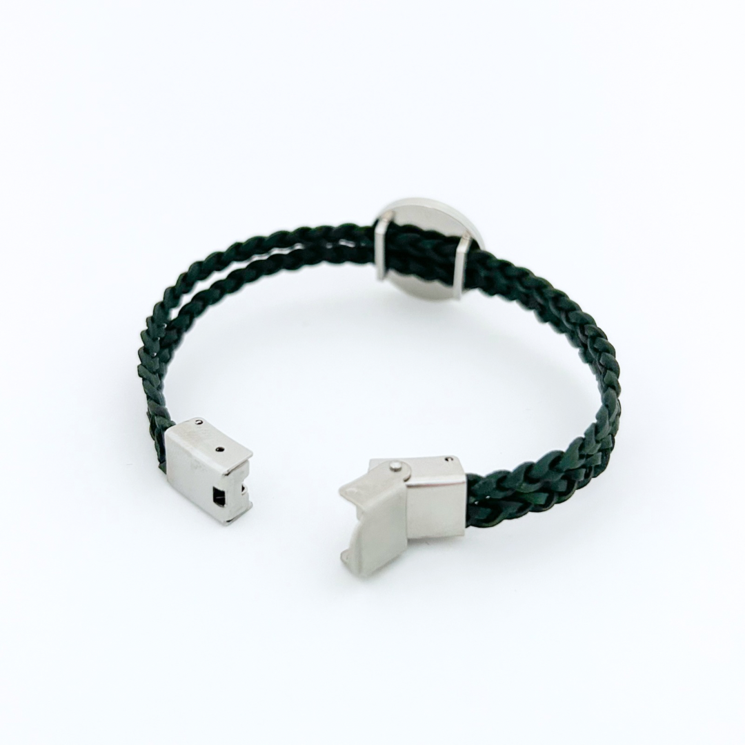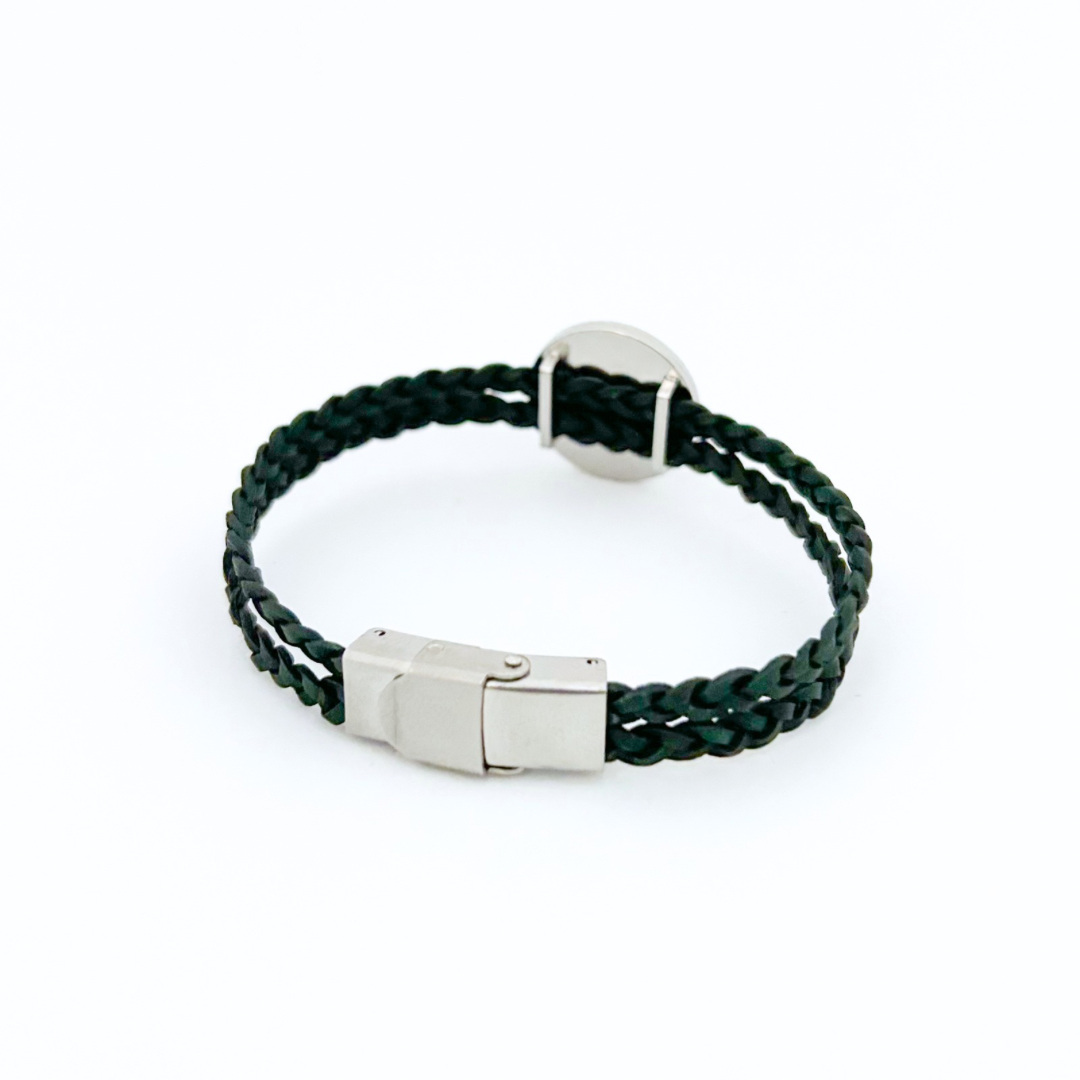 - 2 strands 5mm braided leather in dark green