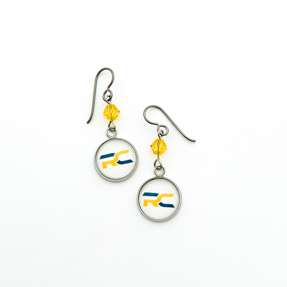 custom Raymond Central high school charm earrings with yellow gold Swarovski crystal bicone beads