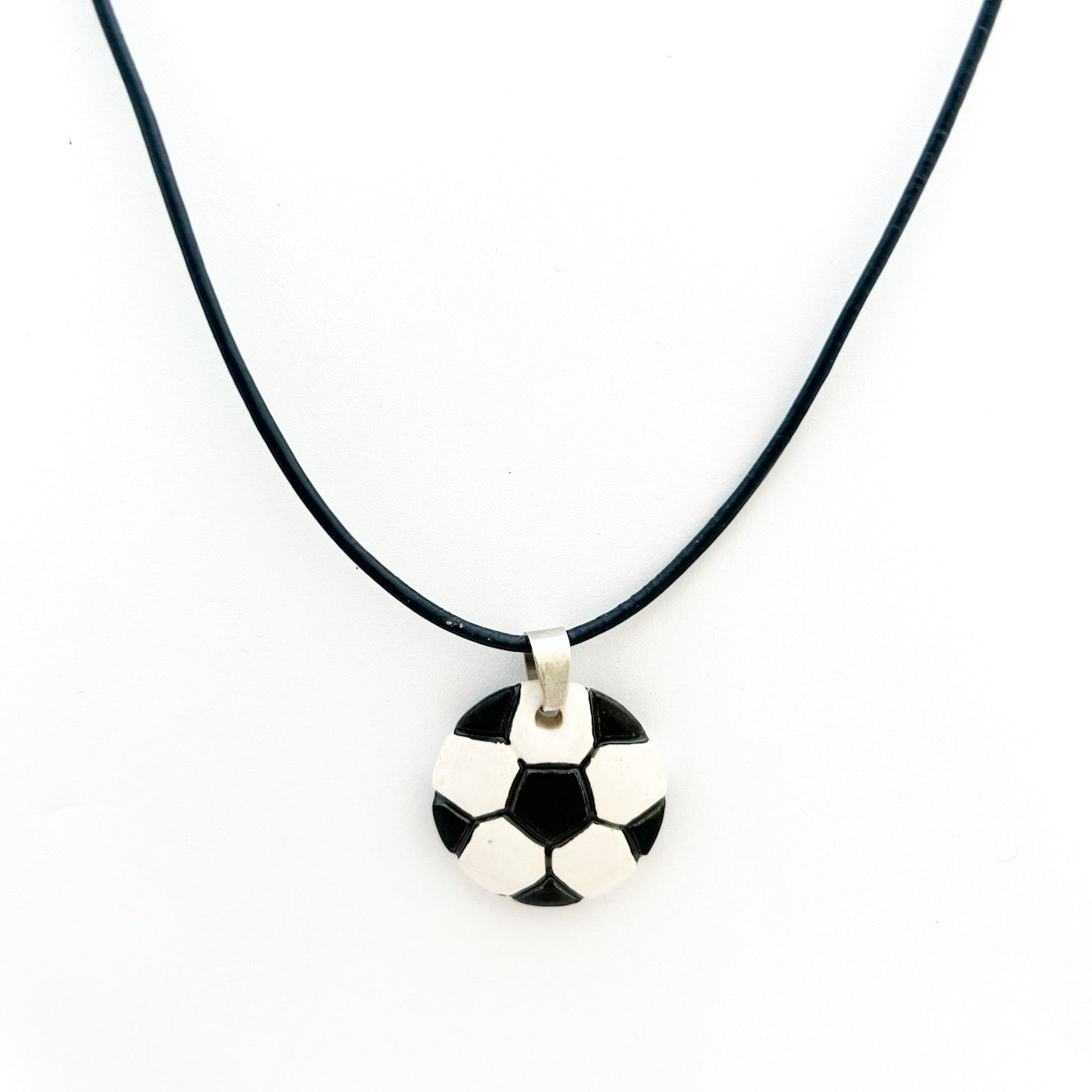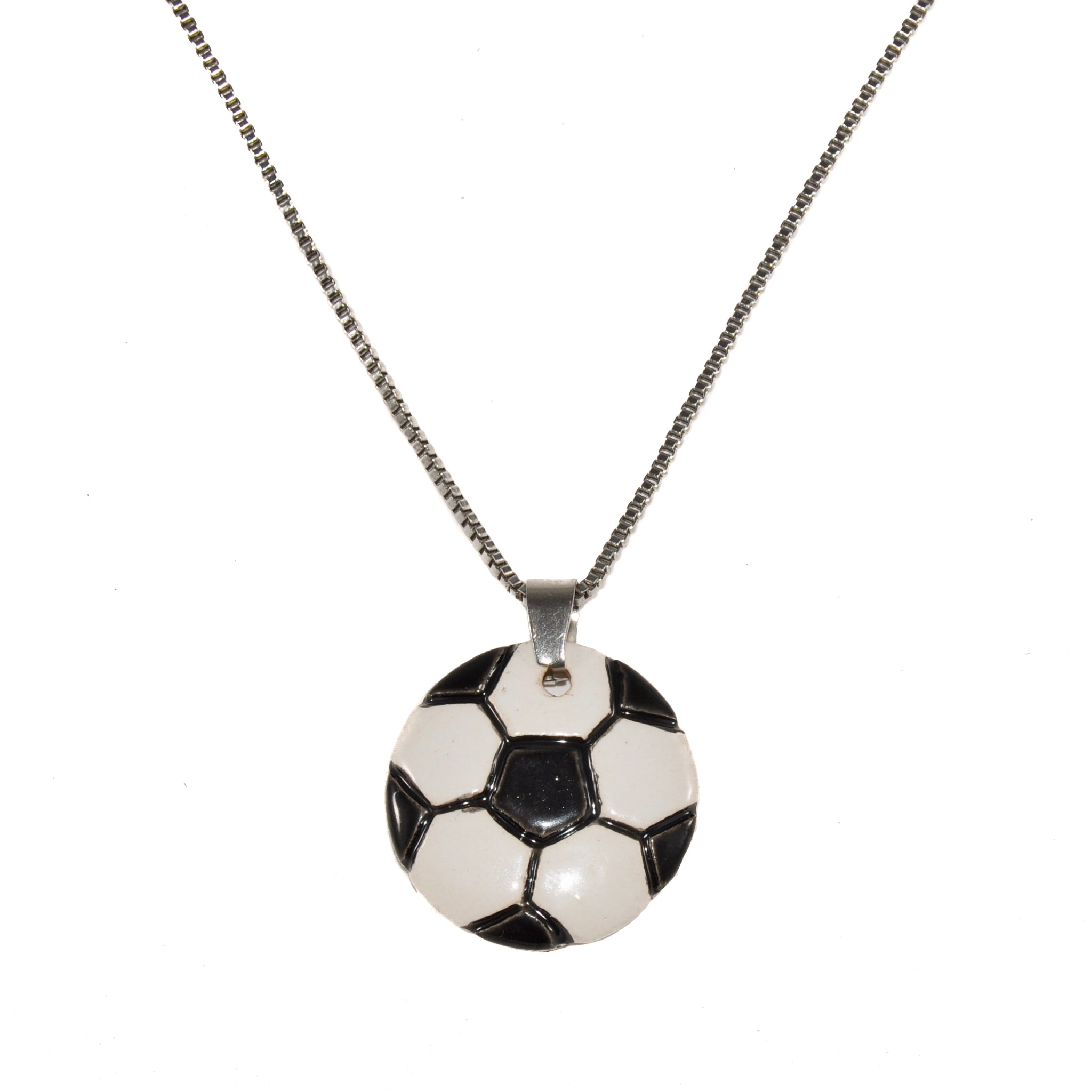 - ceramic soccer pendant measures 1-inch round