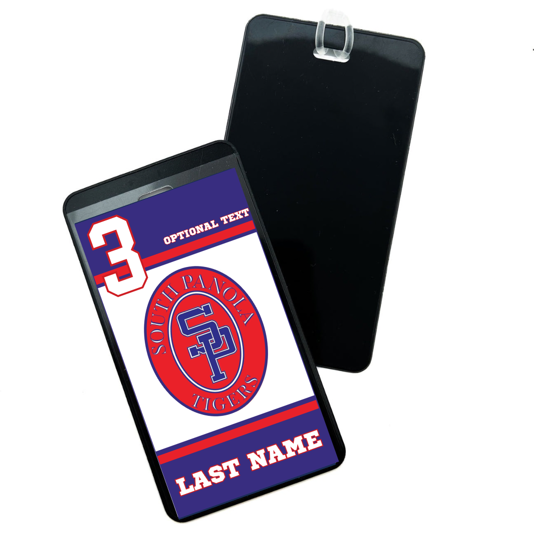 NEW DESIGN! Personalize your own bag tag with your favorite sport, club, or activity!  Choose from a variety of graphics and include your own text.