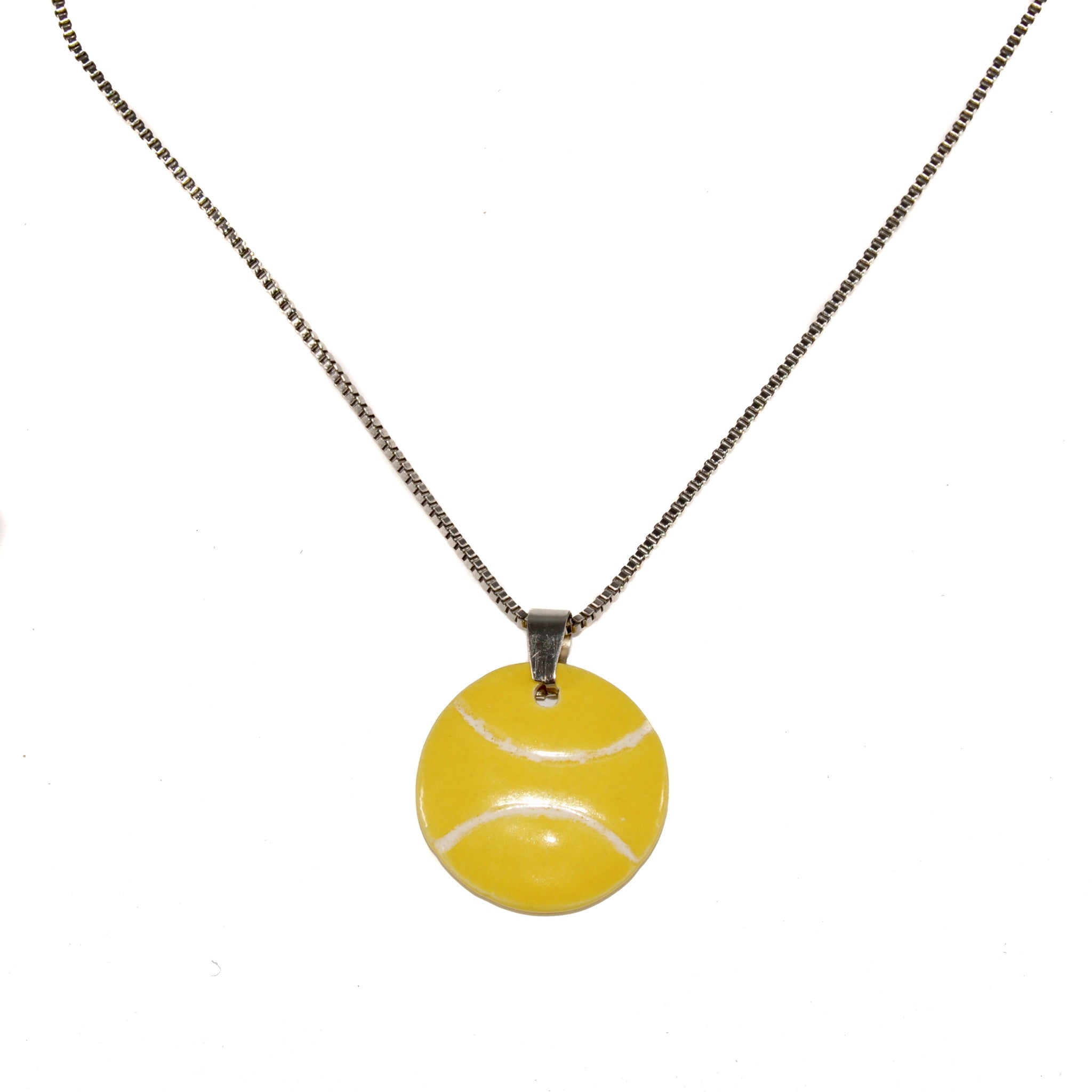 Beautiful tennis necklace boldly states the sport you love. Makes a great team gift.