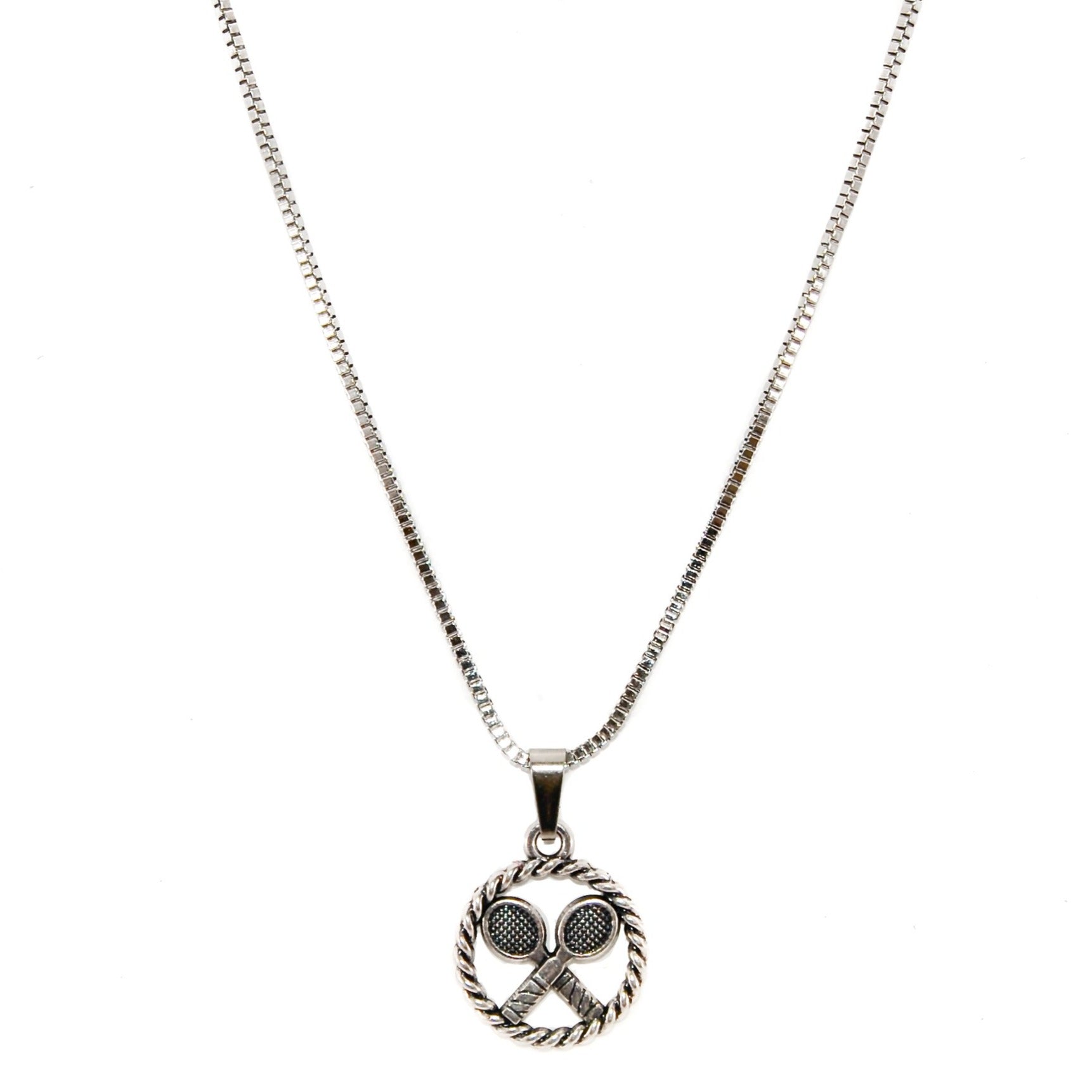 • silver 2-sided tennis charm measures approximately 3/4" round
